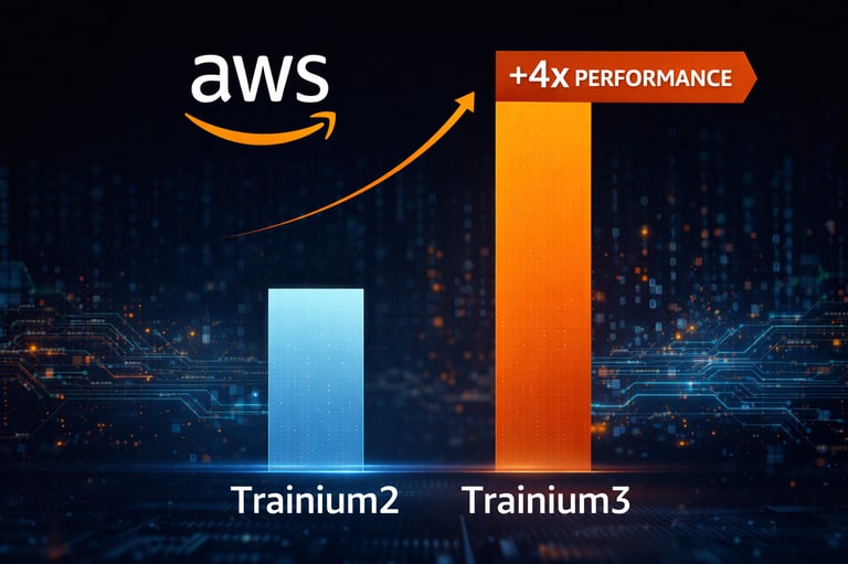 A Amazon está executando uma estratégia mestre para dominar a nuvem e a IA privada. De um lado, ela vende GPUs da Nvidia através da AWS (como no acordo com a OpenAI); de outro, ela promove seus próprios chips customizados, como o Trainium2 e o novo Trainium3.
