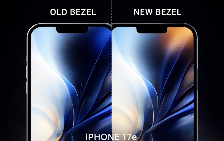 O iPhone 17e manterá a tela OLED de 6,1 polegadas, mas com melhorias visuais significativas. Relatórios indicam que as bordas (bezels) serão mais finas, proporcionando um visual mais moderno e imersivo.